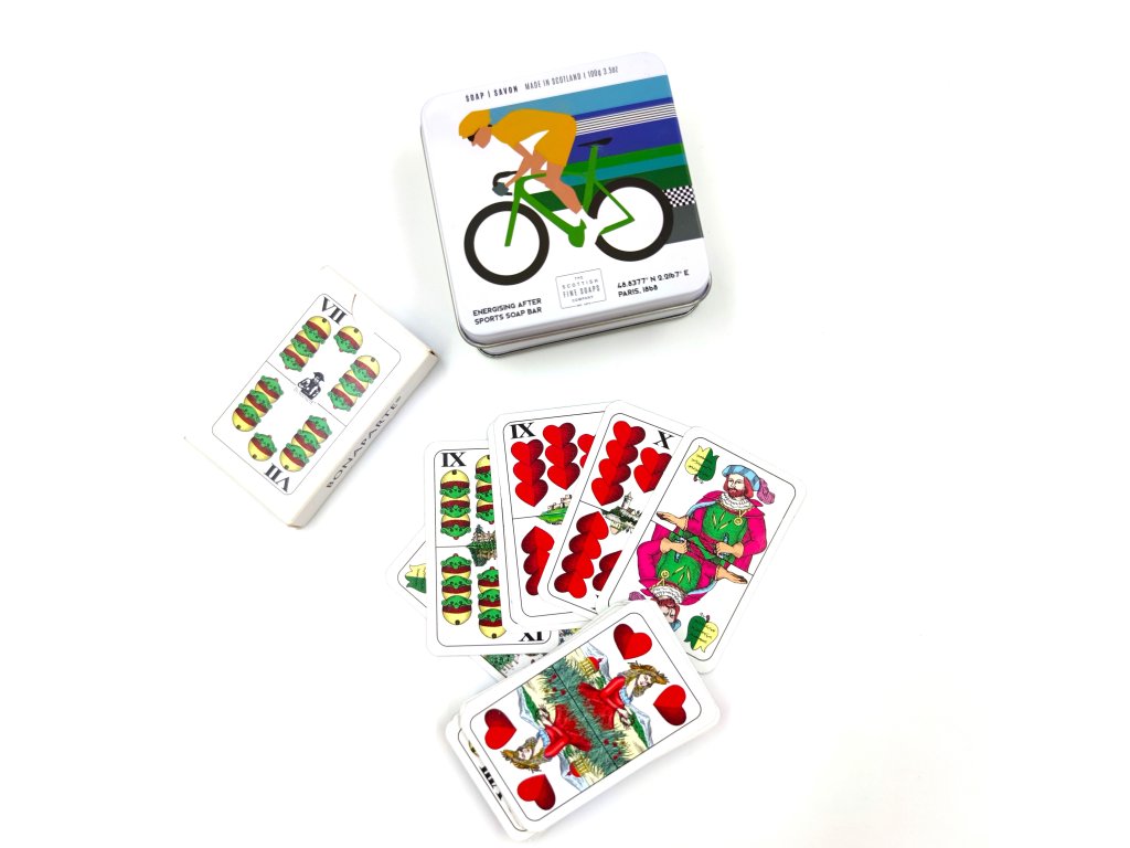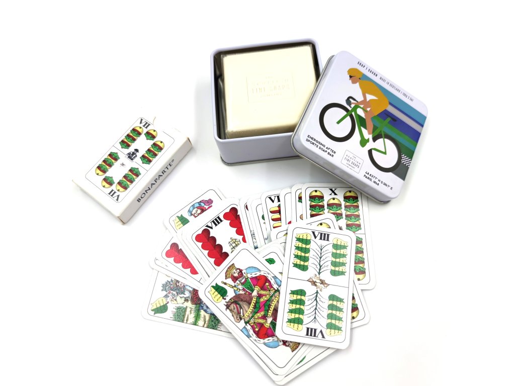 Praktické mýdlo v plechové krabičce ( Scotish soap ) a mini karty na cesty.