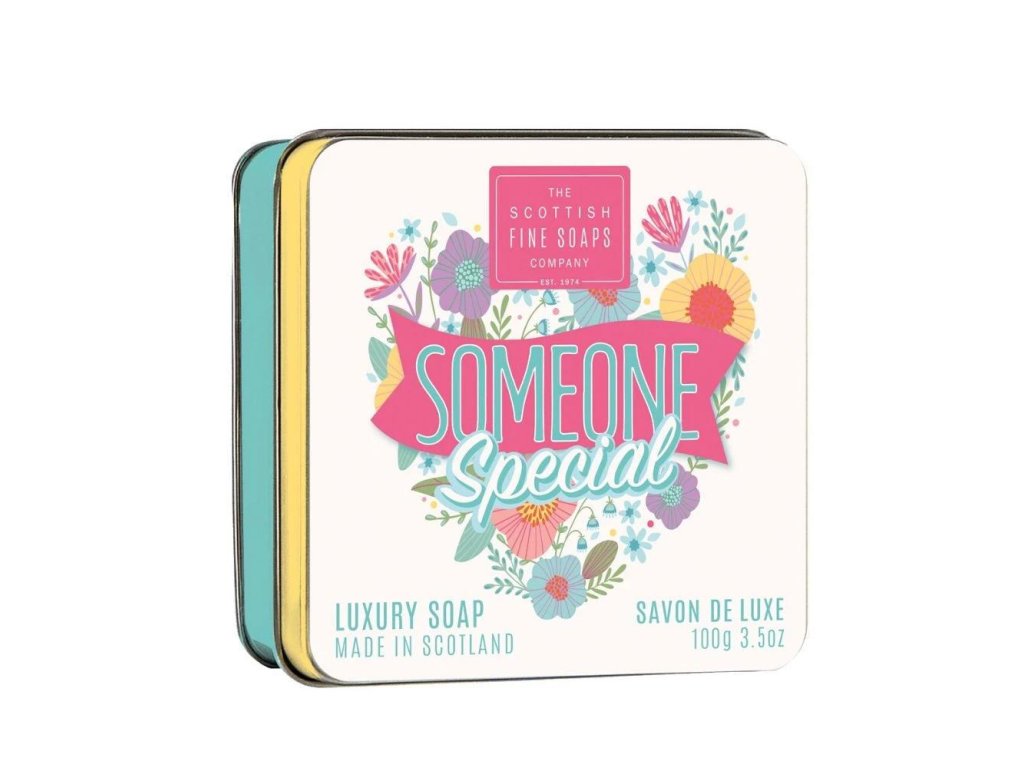Jsi pro mě jedinečná ! Luxusní a praktické mýdlo Someone special v plechové krabičce ( Scottish soap s jemnou vůní magnolie a pepře ).