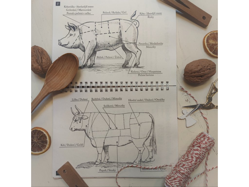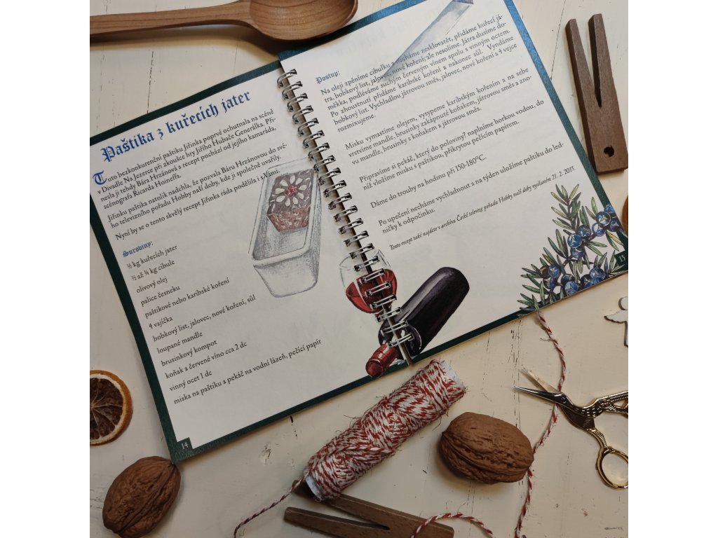 Jedinečný receptář s jedenácti recepty od Jiřiny Bohdalové, které uvařila se slavnými herci a přáteli, do kterého si můžete zapisovat vaše rodinné recepty a krásná zástěra s motivem jezevčíků. Právě toto psí plemeno má v oblibě rodina Jiřiny Bohdalové již po generace. S nostalgií Jiřinka vzpomíná na pokolení jezevčíků jejího tatínka a ona v této tradici s láskou pokračuje. Současným mazlíčkem je štěně drsnosrstého jezevčíka Růženka. Je mazlivá, chytrá a je s ní velká legrace.